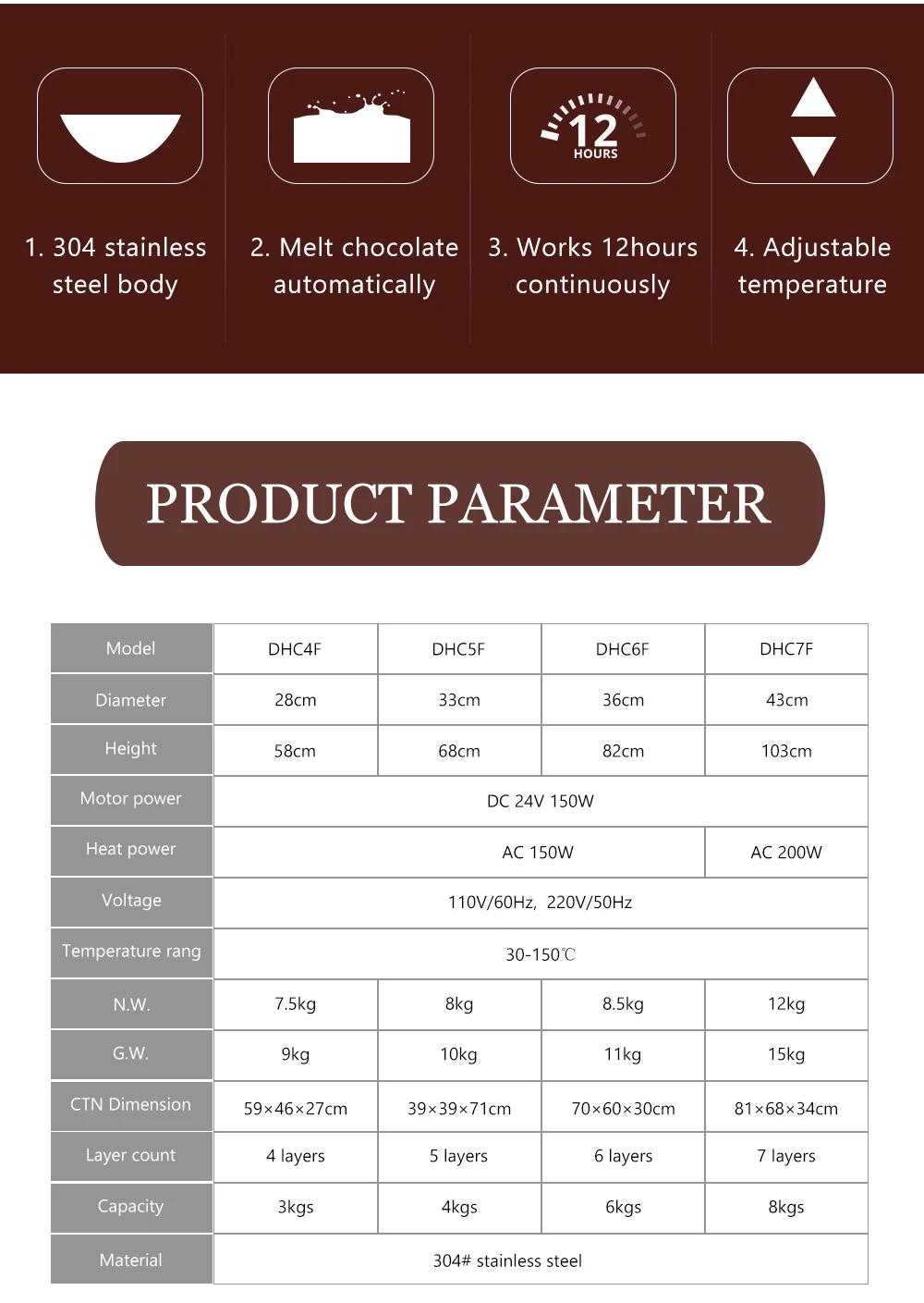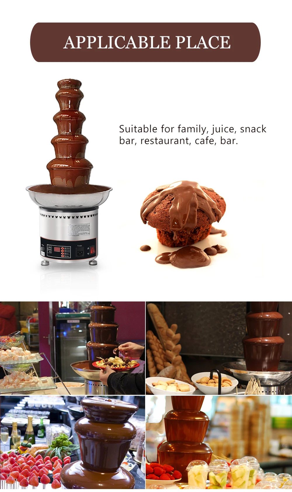 2.can quickly and directly melted chocolate,adjustable temperature,heat stability, not to undermine the chocolate ingredients.