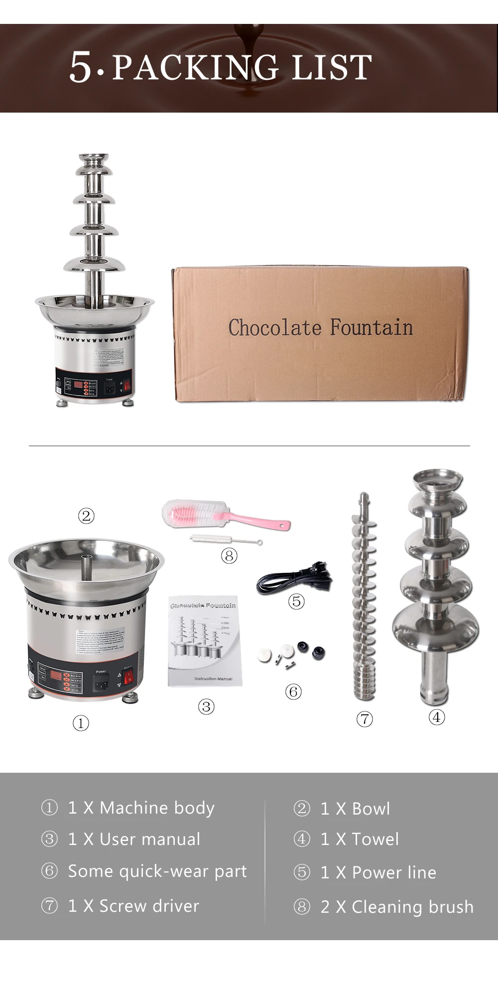 6 Tiers Chocolate Fountain Stainless 5kg Commercial Party Chocolate Fountain Chocolate Waterfall machine 110V/220V/240V