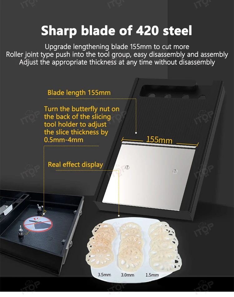 *Different & interchangeable blade plates meet your julienne and slicer demands