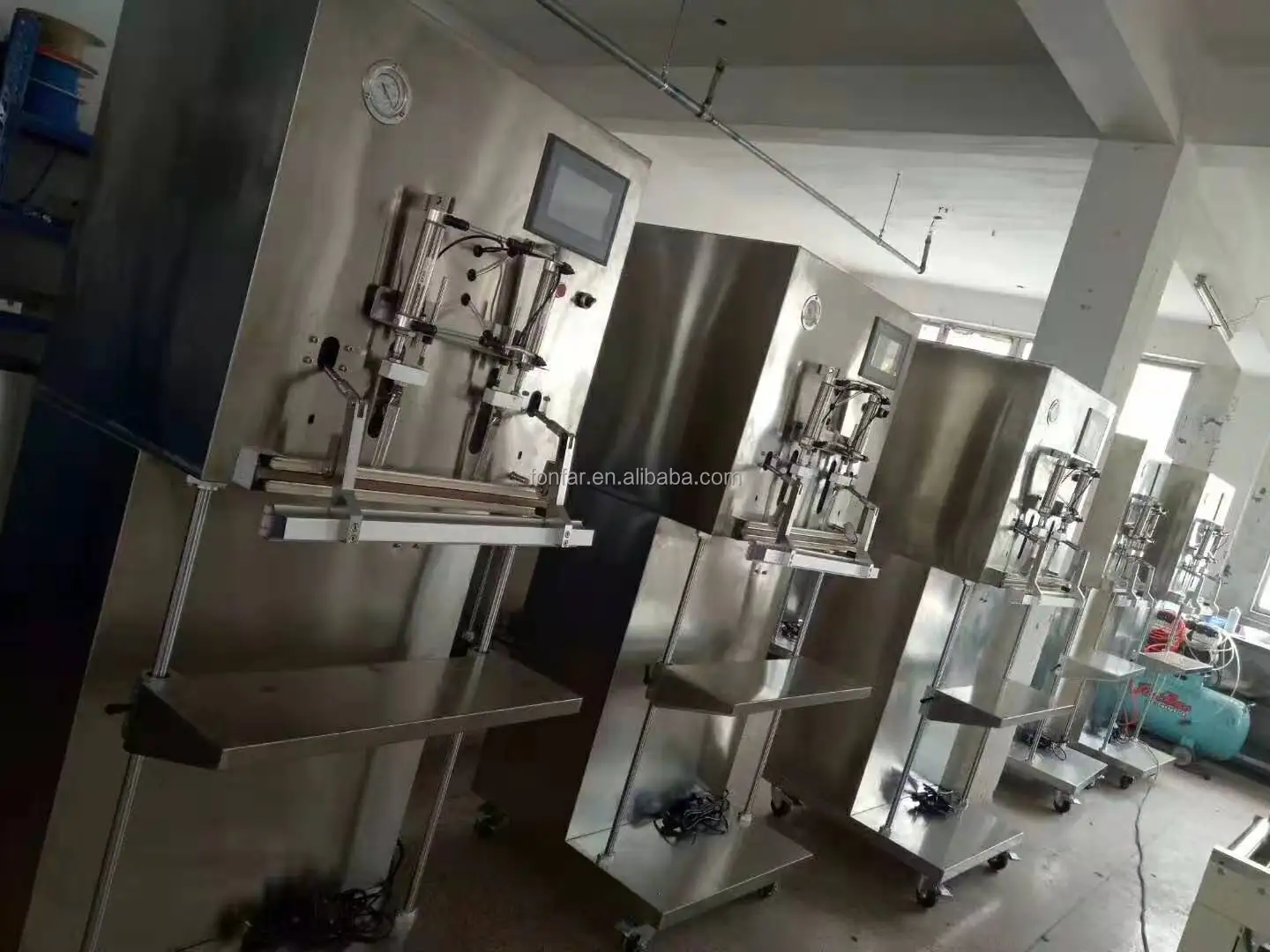 The Filling Machine is driven by a cylinder and piston made from materials with one-way valves control the flow of materials; Magnetic reed switch control cylinder itinerary can be regulated filling volume.
