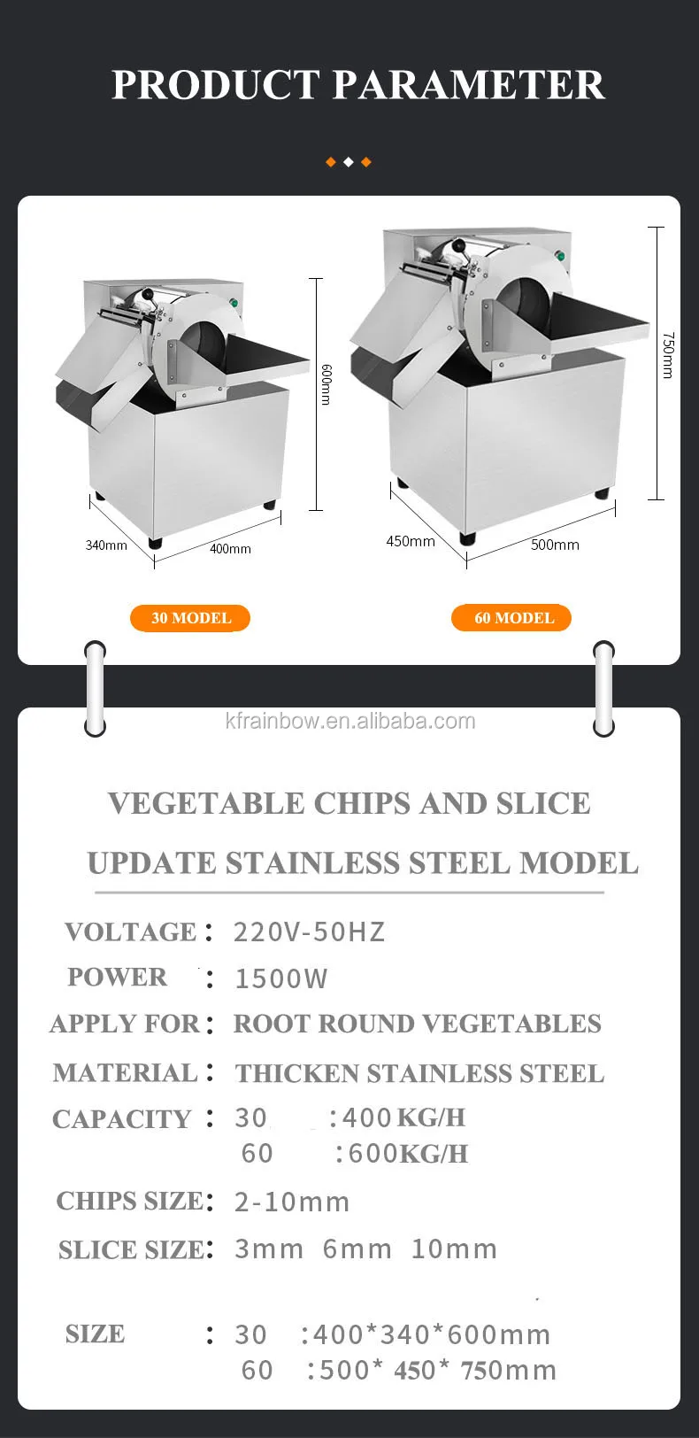 Factory Cheaper Fruit Vegetable Slicer Chopper Cutter Processing Machine Multifunctional Stainless Steel ISO 60 3 / 6 / 10 Mm RB