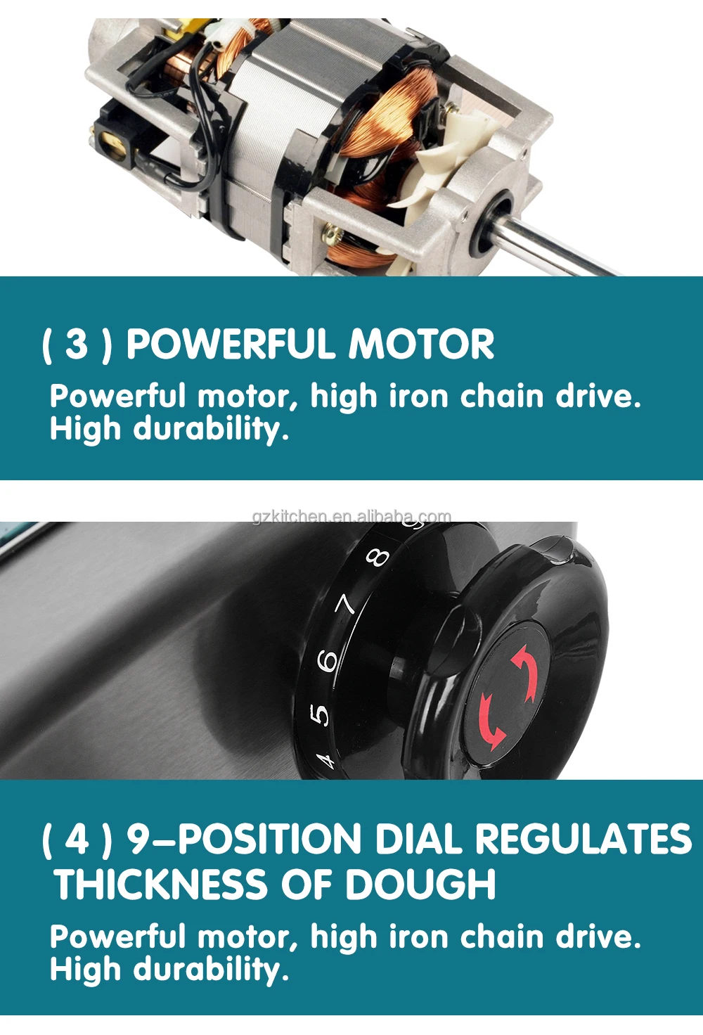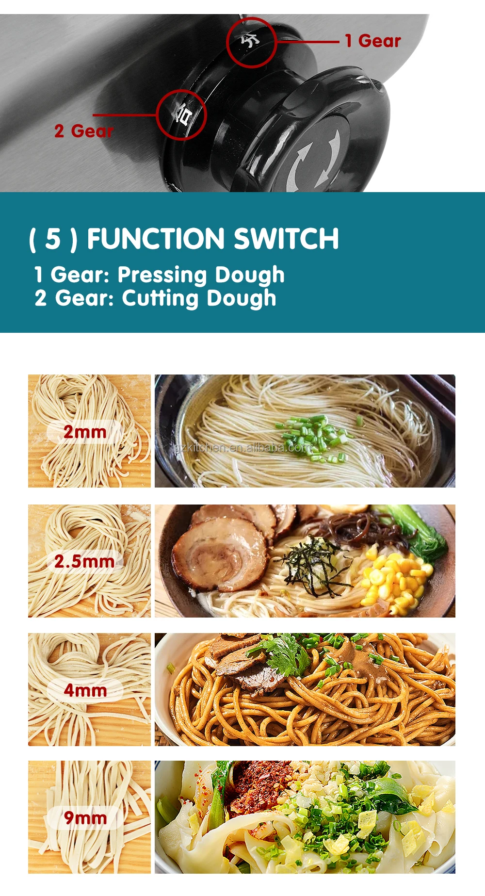 1st gear: pressing dough ; 2nd gear: cutting dough