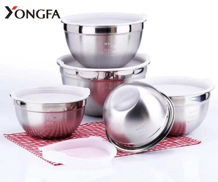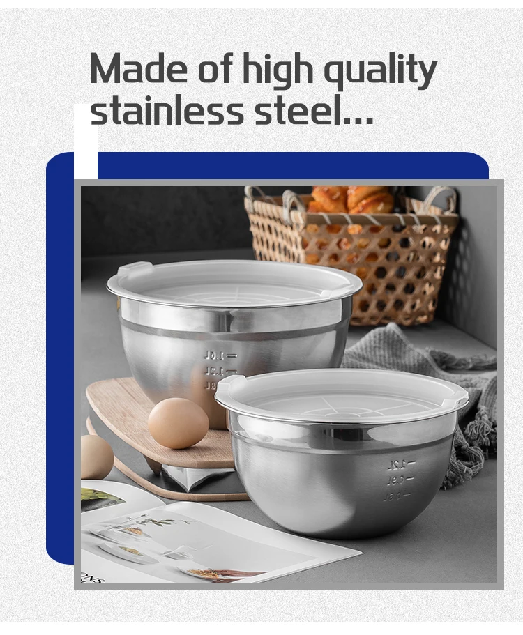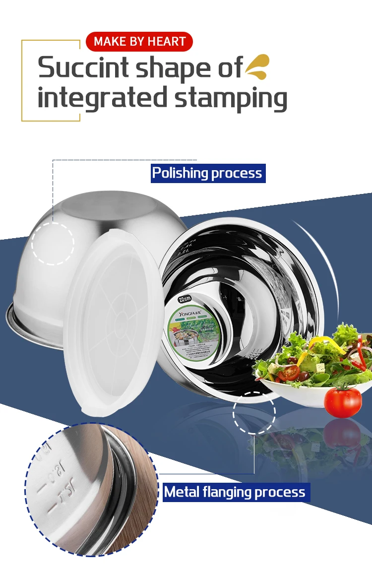Mirror Polish Kitchen Mixing Bowl Stainless Steel Bowl Set for Mixing Salad With or Without Lids FREE Sample