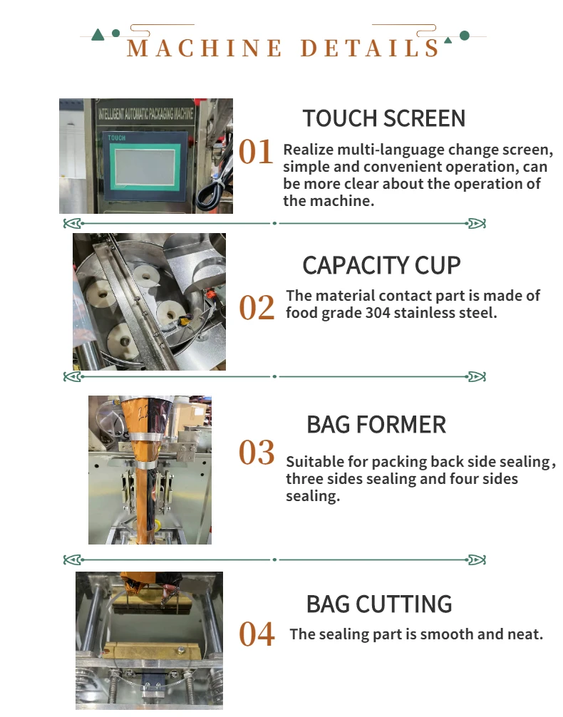 Suitable for packing puffed food, potato chips, millet crisps, candies,nuts,capsule,dried fruits,grains,seeds,beans,plastic particles,powder,sugar,salt,peanut,rice,pistachio,etc.