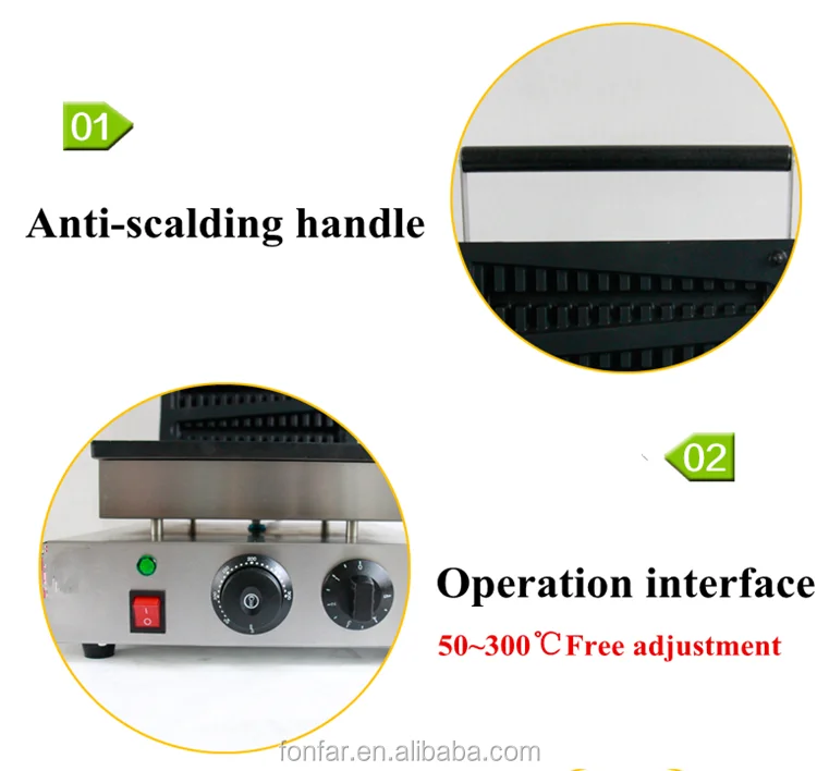 The Commercial Waffle Toaster is designed for baking waffle with independent heat control and