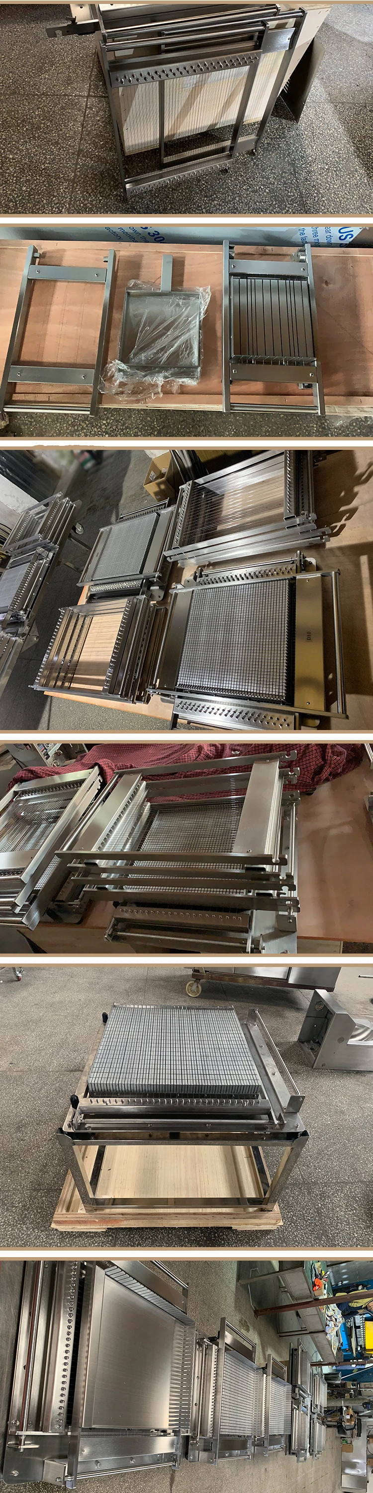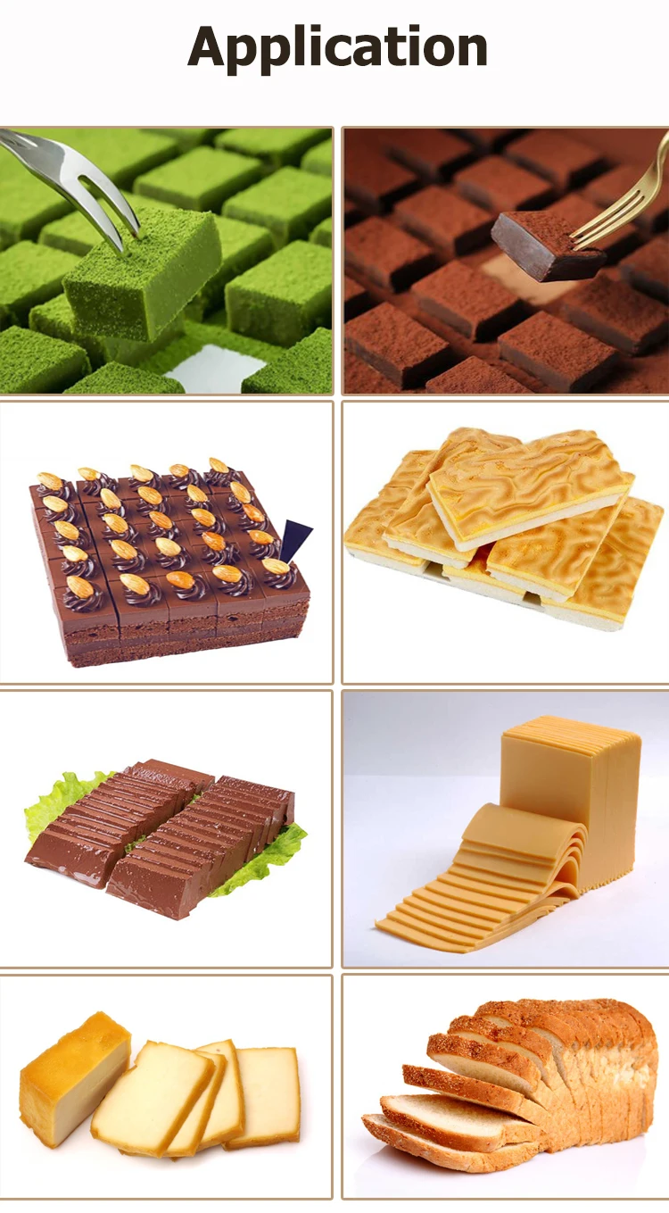The machine is made of all stainless steel, with sharp blades. There are large and small operating tables available. The cutting size can be customized according to your needs, suitable for dessert shops, soap making workshops, restaurants, hotels, chocolate factories, bakeries, food processing plants,etc. It can be used to cut cheese, bread, cake, chocolate, soap, tofu, brownie, pudding, toast, raw chocolate,etc.