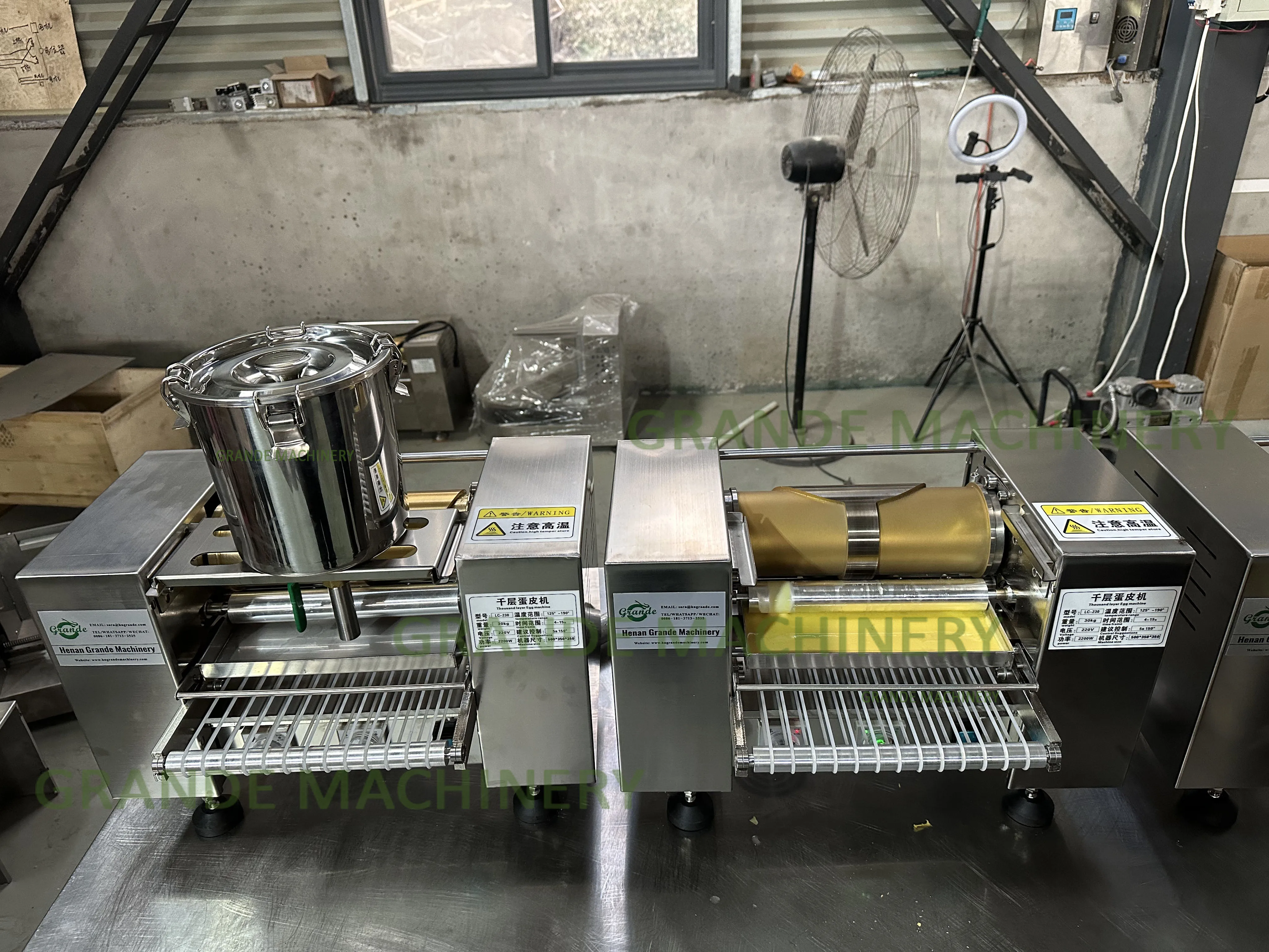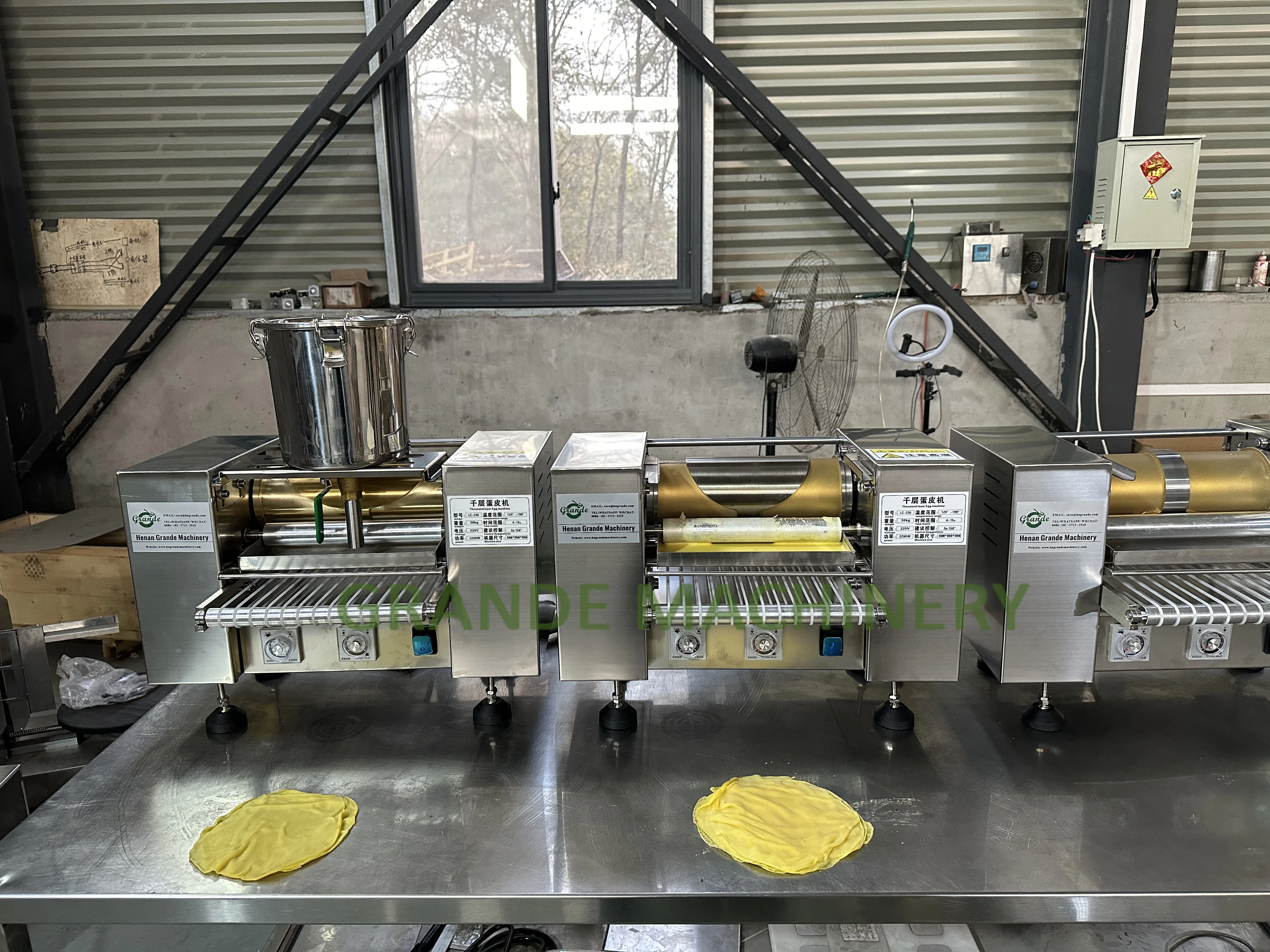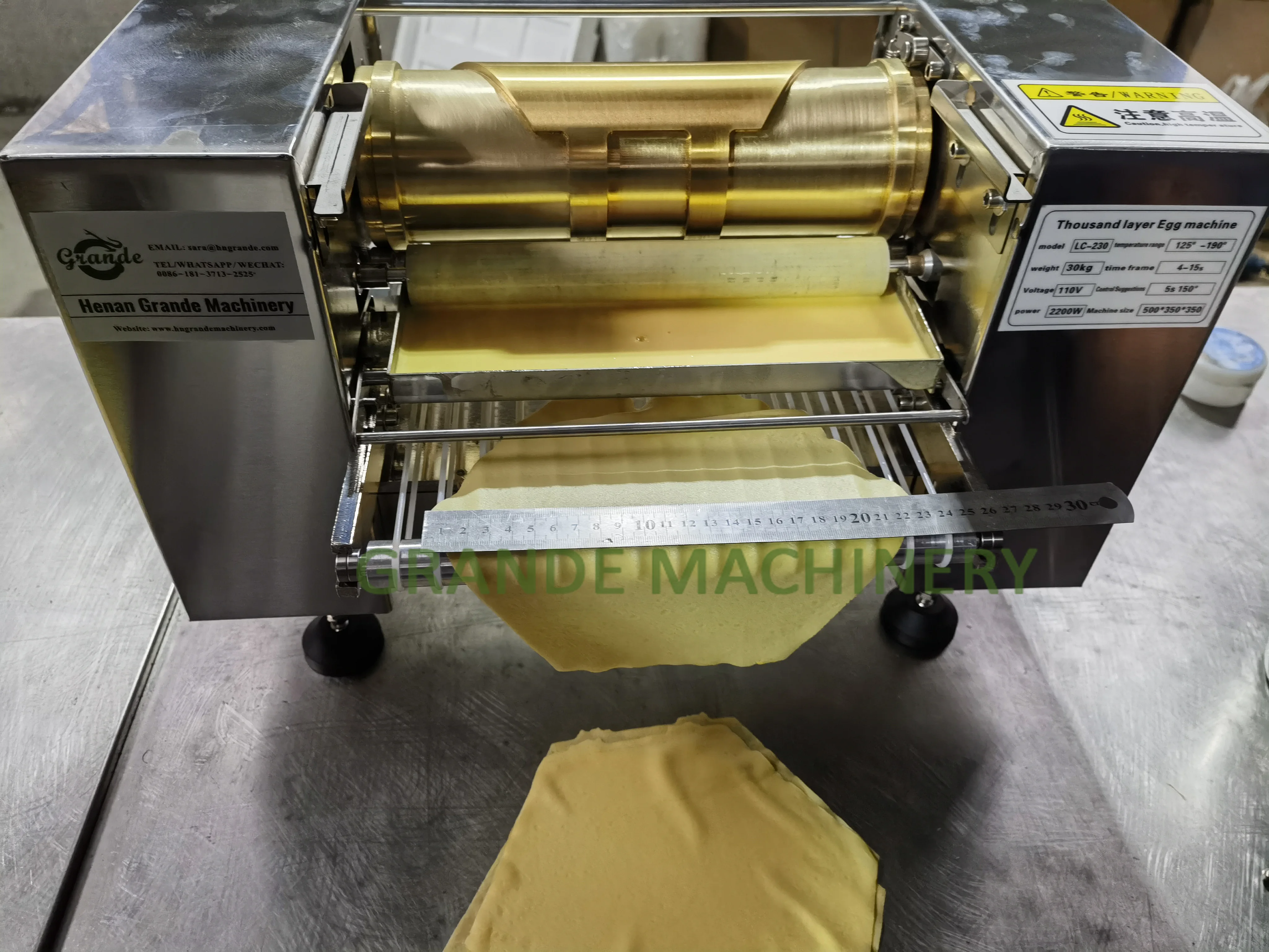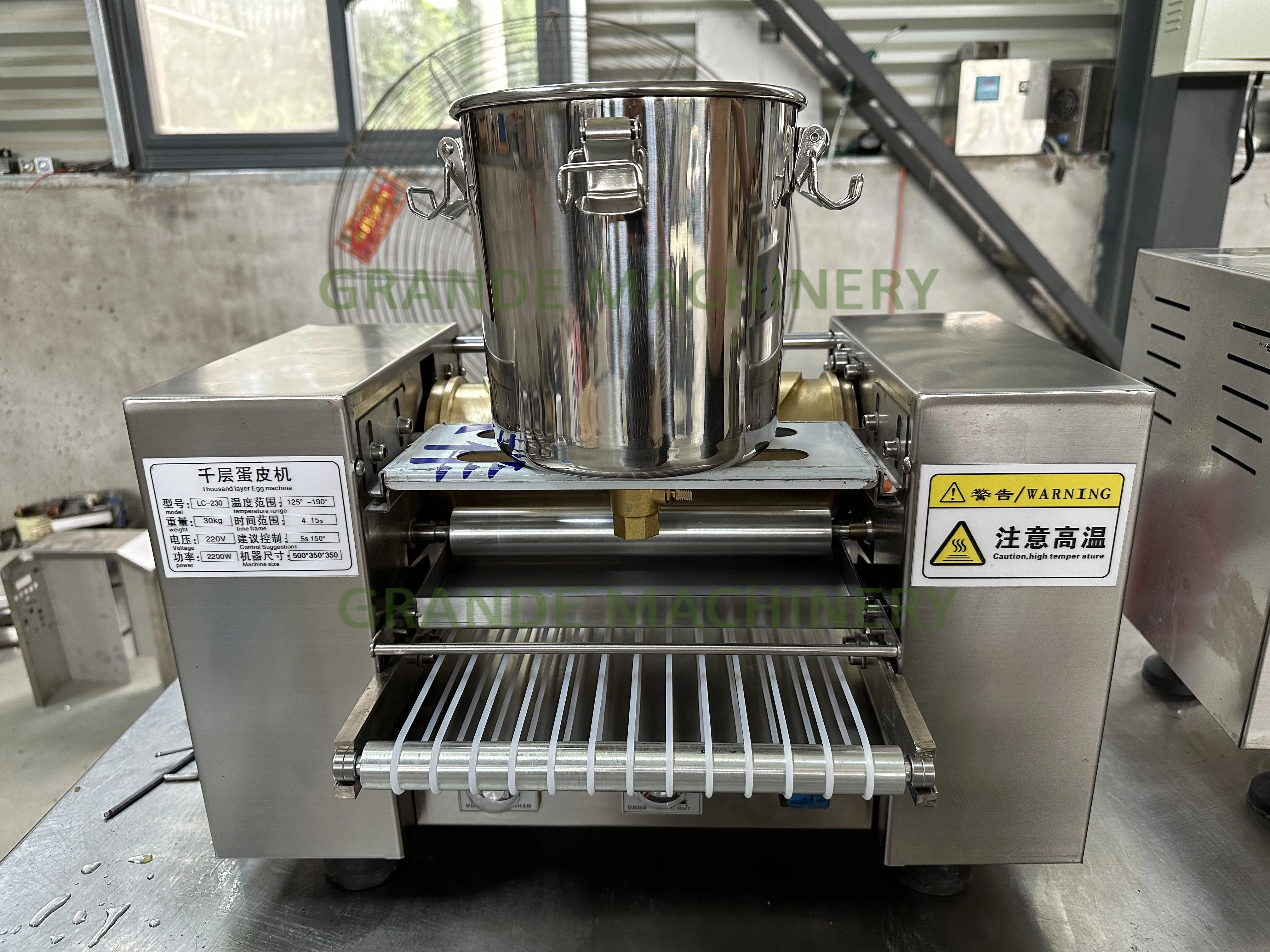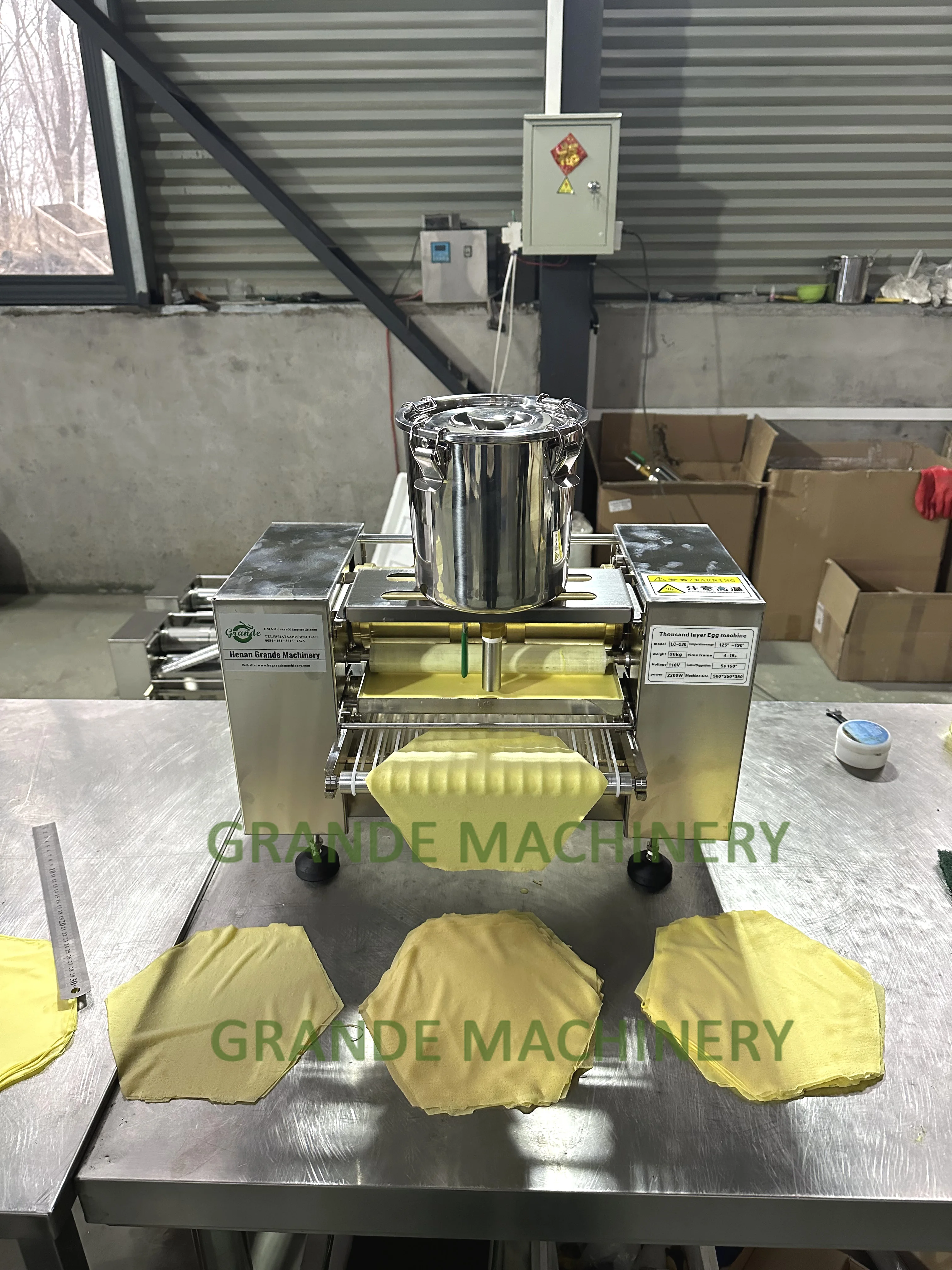 The mille crepe cake/layer cake skin making machine/crepe machine/egg skin machine is used to make crepe skins for mille crepes, egg skins, etc. According to different moulds, it can make 6-inch to 14 inch products, which is convenient and fast.