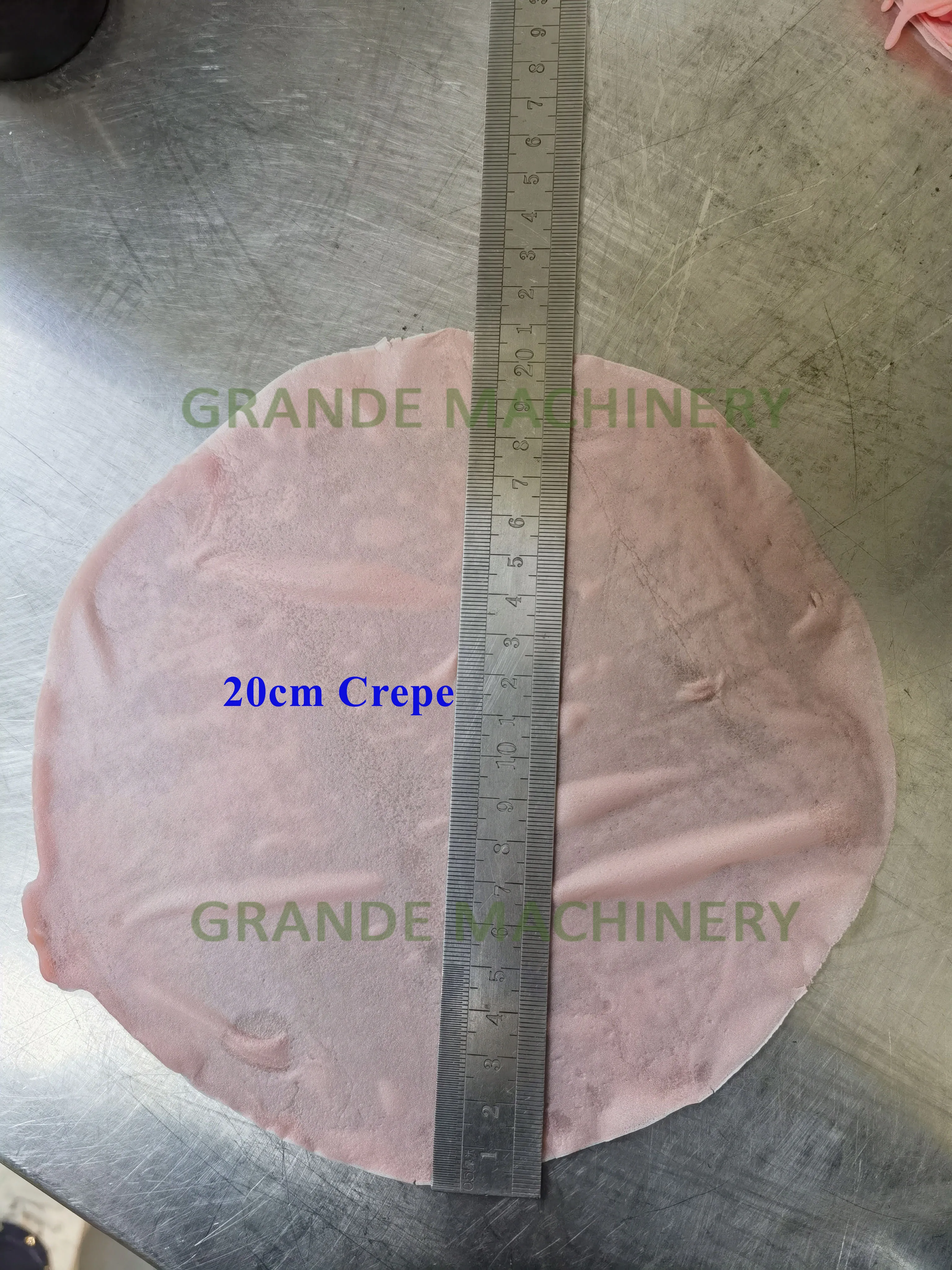 Remarks: The above crepe making machine/layer cake wrapper skin making machine can make 6inch, 8inch, 9inch and 10 inch or other customized more large diameter, according to your different needs. And the wrapper's shape can be customized according to your requirements. Any questions, please feel free ask me.
